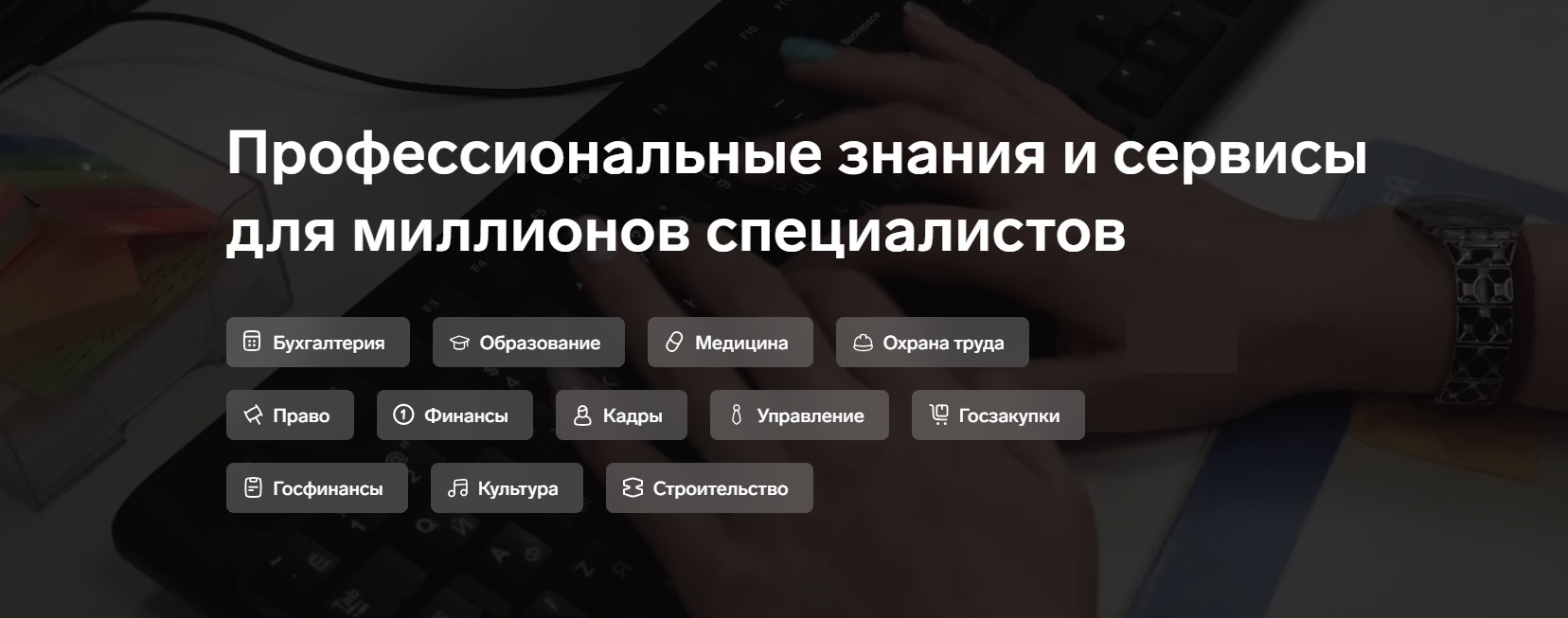• электронных баз эксклюзивных рекомендаций, нормативно-правовых документов, бланков, схем для руководителей компаний, юристов, бухгалтеров и кадровых специалистов: электронных справочных систем «Главбух», «Кадры», «Юрист», «Финансовый Директор»,